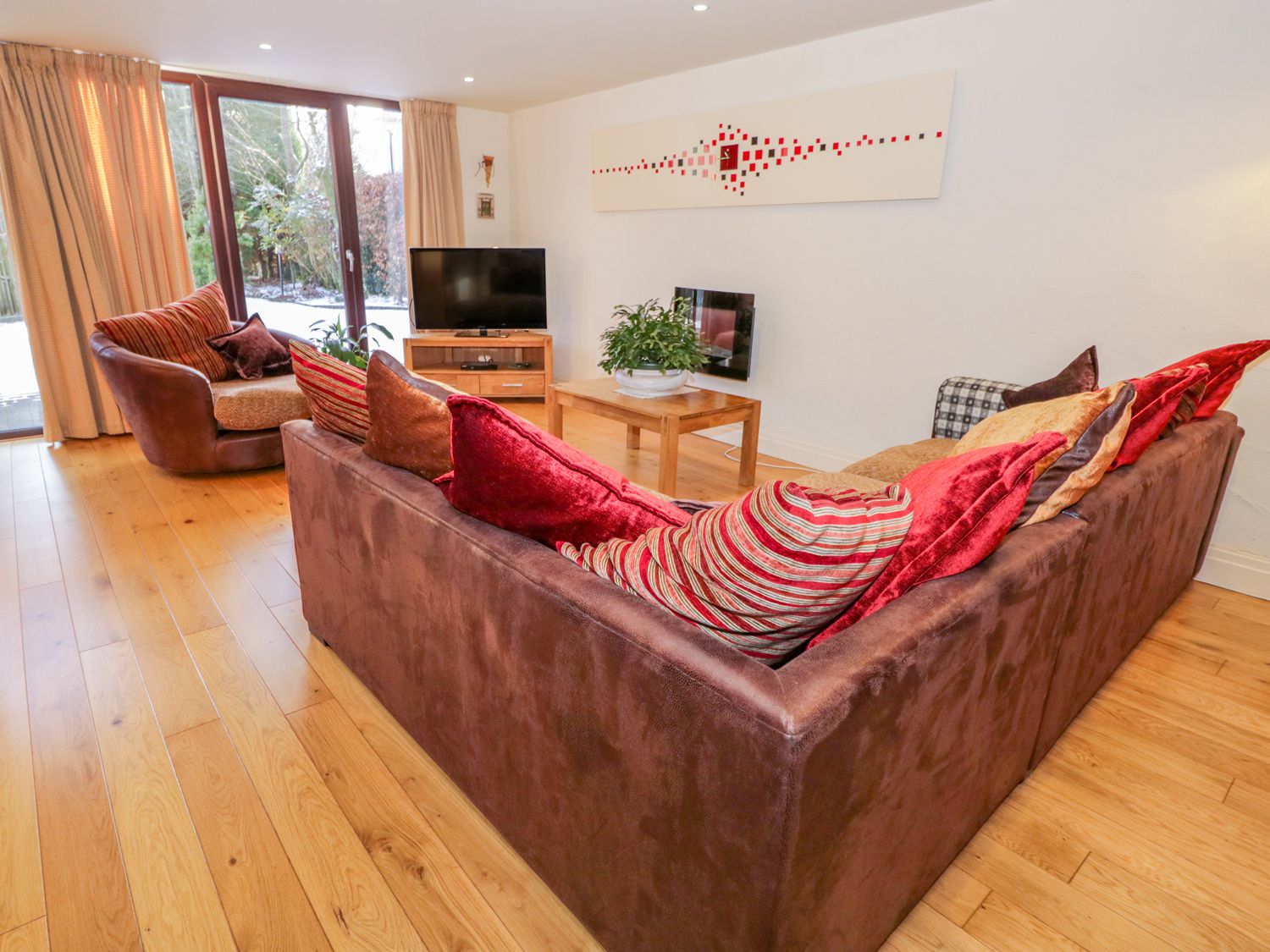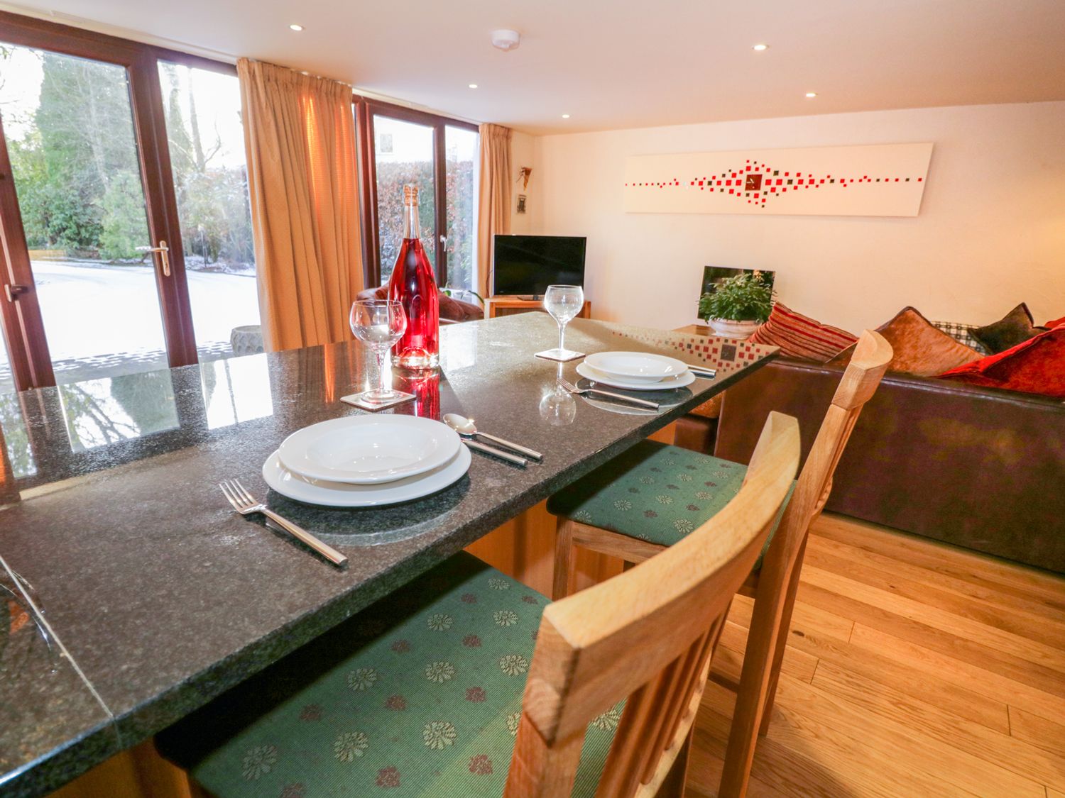Lounge with comfy sofa and snuggle chair, large TV. Free Wi-fi.